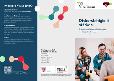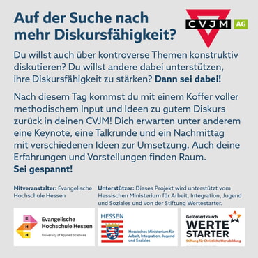 Als CVJM sehen wir es als unsere Aufgabe, diese Diskursfähigkeit zu stärken, damit Menschen unserer Vereine vor Ort sensibilisiert, befähigt aber besonders auch ermutigt werden, aktuelle gesellschaftliche Themen in ihren Verein zu bringen. Wir möchten (auf diese Weise) einen Raum schaffen, in dem wertschätzende und konstruktive Gespräche stattfinden können und in dem Menschen lernen, ihre Meinungen zu äußern und andere Meinungen zu respektieren.